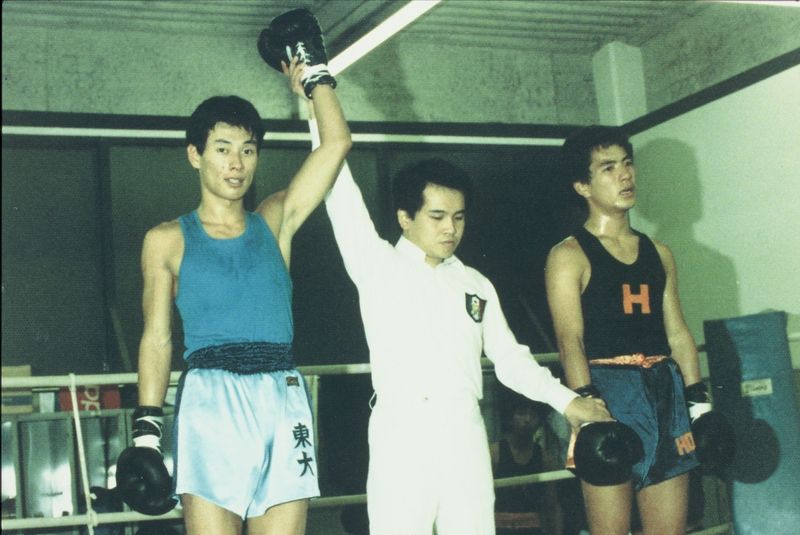 4.もちろん、このように教わっても、我が同期の主将、城崎昌彦氏(現電通)のように、高校時代からプロのジムで揉まれてきた武者は、ファイタータイプで、最初から最後まで激しく打ち合うスタイルは全く変らなかった。ある時、城崎氏がKO勝ちで試合を終えた後、しばらく経ってから「あれ、オレ試合やったっけ?」と言った時には驚いた。とうとう「パンチ・ドランカー」になったのか、と皆で笑いながらも冷や汗を流したものだ。
